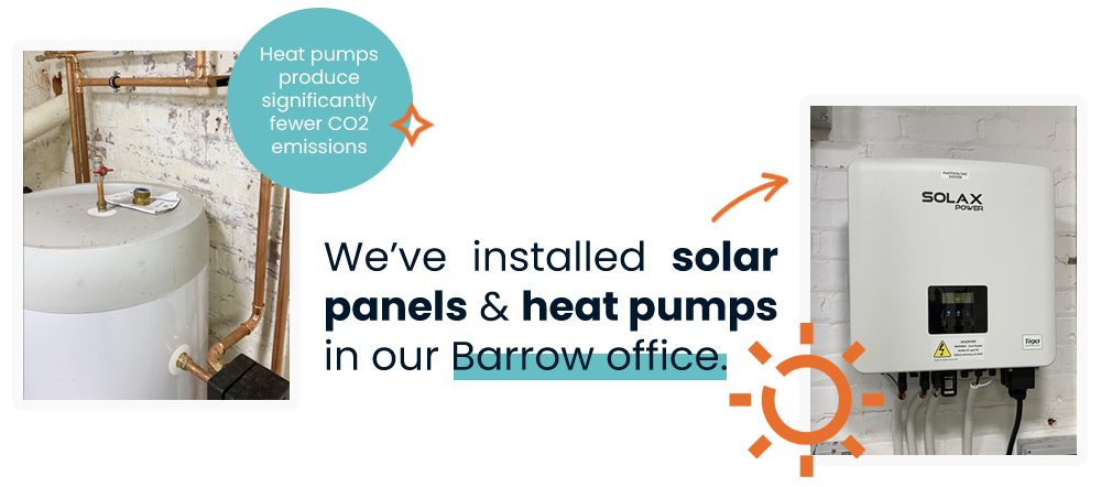 The installation of Heat Pumps coupled with a Solar Electricity Solution in our new office at the heart of Barrow town centre will reduce tons of CO₂!